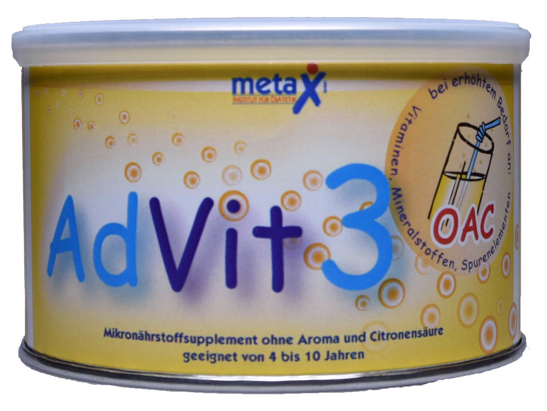 AdVit ist ein Mikronährstoffsupplement in Pulverform für 3 Alters-Stufen.